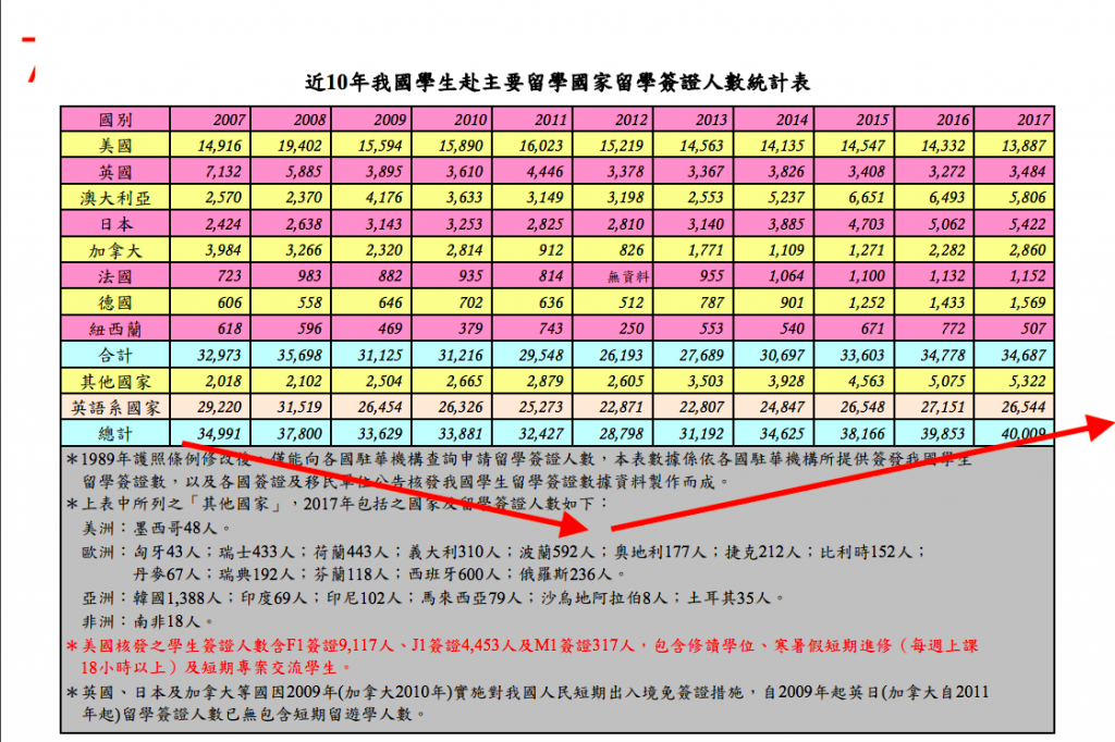 此外,根據教育部統計資料顯示,我國過去十年的旅外留學生從2007年的34,991人降到2012谷底的28,798人。然而,在近年少子化的情況下,留學生卻又逐年逆勢成長到去年的40,009人。根據筆者自身這兩年在紐約求學的經驗,有許多人是在臺灣與大陸工作一陣子之後,為了尋求更好的生活環境與薪水而來先落地求個學歷好方便找實習,才有可能在美國拿到offer(找到工作)。這類留學帶有明確而強烈的求職/轉職甚至移民目的,而且數量只增不減。