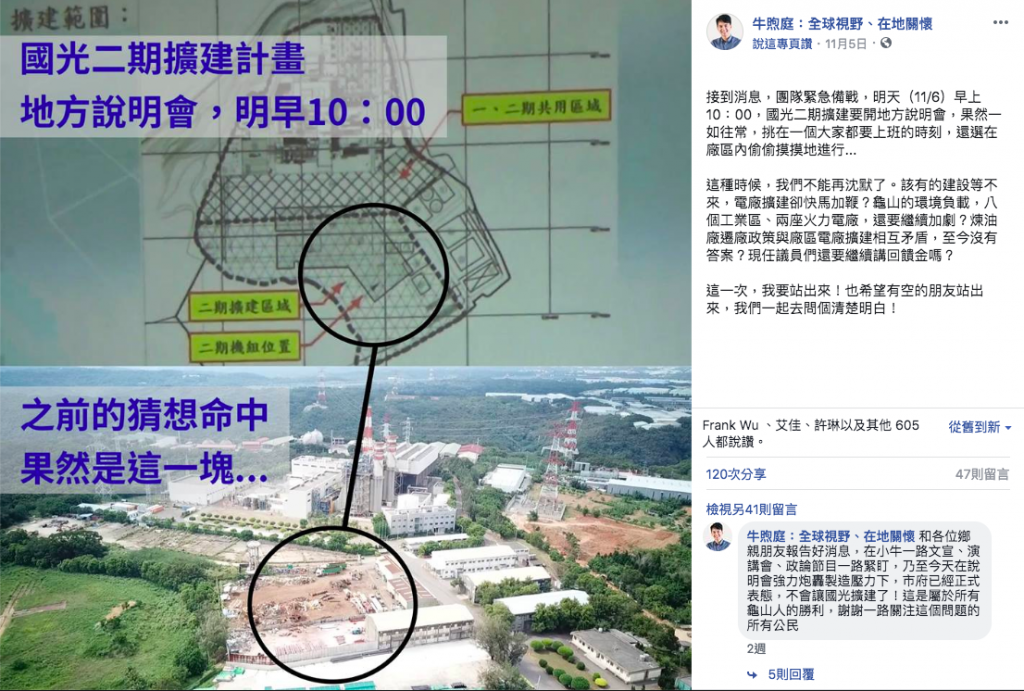 牛:我比較關注的是龜山的環境與交通。「龜山人要停車場、不要發電廠」是我活動宣傳的固定台詞。