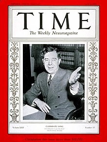 右圖:休伊•隆登上時代雜誌封面 (圖片來源:時代雜誌)