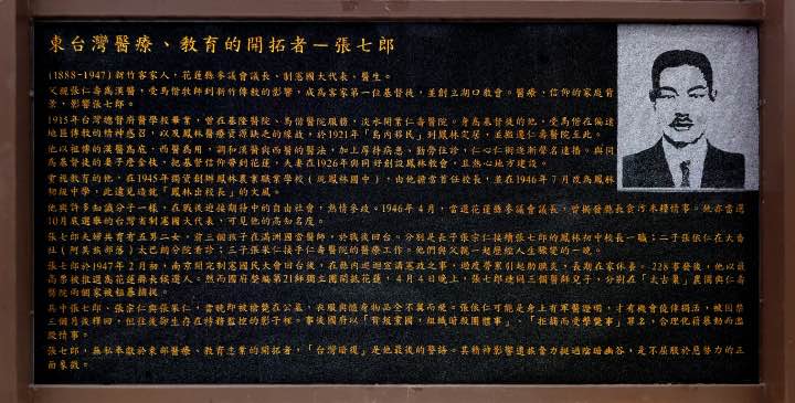 「二二八事變中,花蓮縣縣長張文成曾函請張七郎到花蓮市協助維持治安,而張氏乃托病婉復不理,是以張縣長正為埋恨七郎。並張(七郎)於前日本時代,倚靠日人勢力,魚肉平民,至其子張振龍、張振慶,係前為日人徵調在滿州服務,曾加入共黨,臺省光復後,回返花蓮鳳林。查振龍係任鳳林中學校長,振慶在家係任醫生…….」