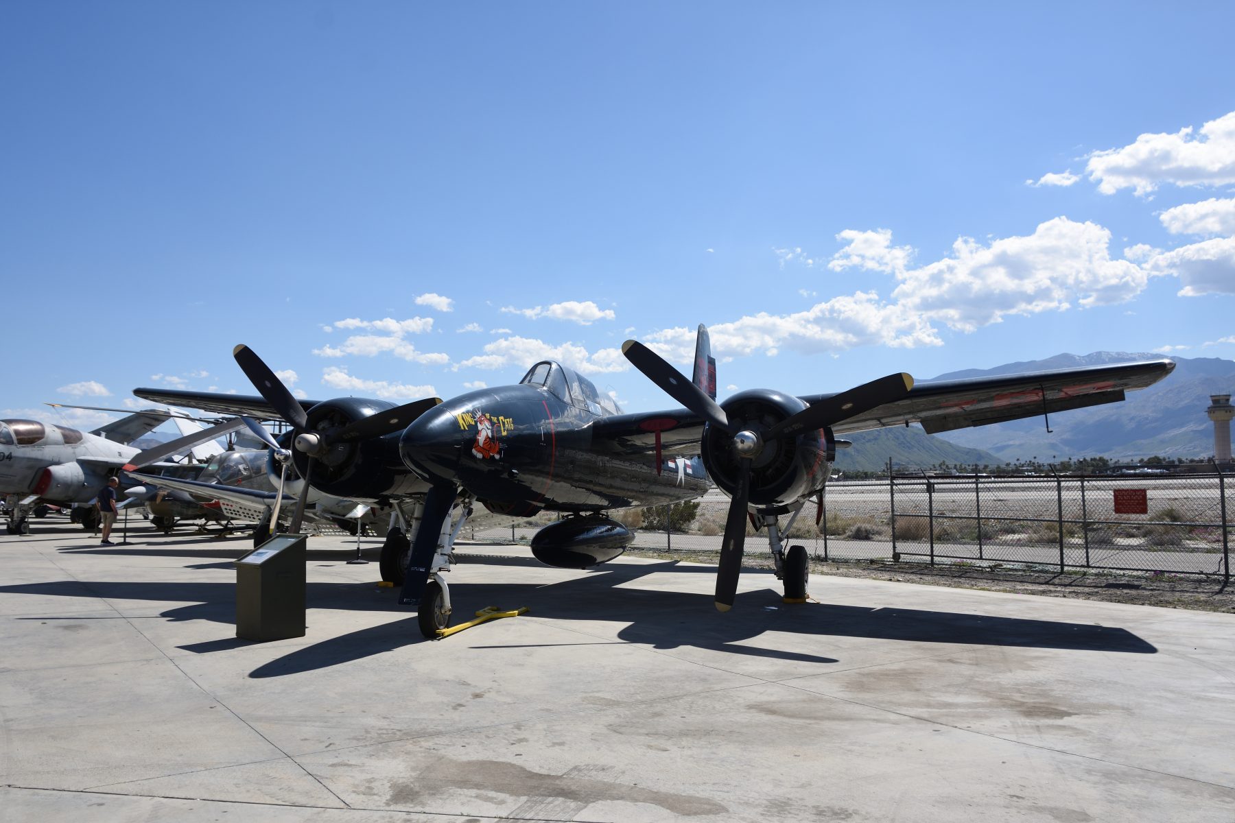 其中一款棕櫚泉航空博物館所收藏,曾經駐紮於中華民國,但是卻比較鮮為人知的機種,就是由格魯曼公司(Grumman)研發的F7F虎貓。原來在日本剛投降之際,為了防止整個華北戰場落入中共之手,杜魯門總統派遣陸戰隊第3兩棲軍協助國民政府接收河北與山東兩個省份。第3兩棲軍麾下的陸戰隊第1師負責河北省,陸戰隊第6師則負責山東省的受降任務。