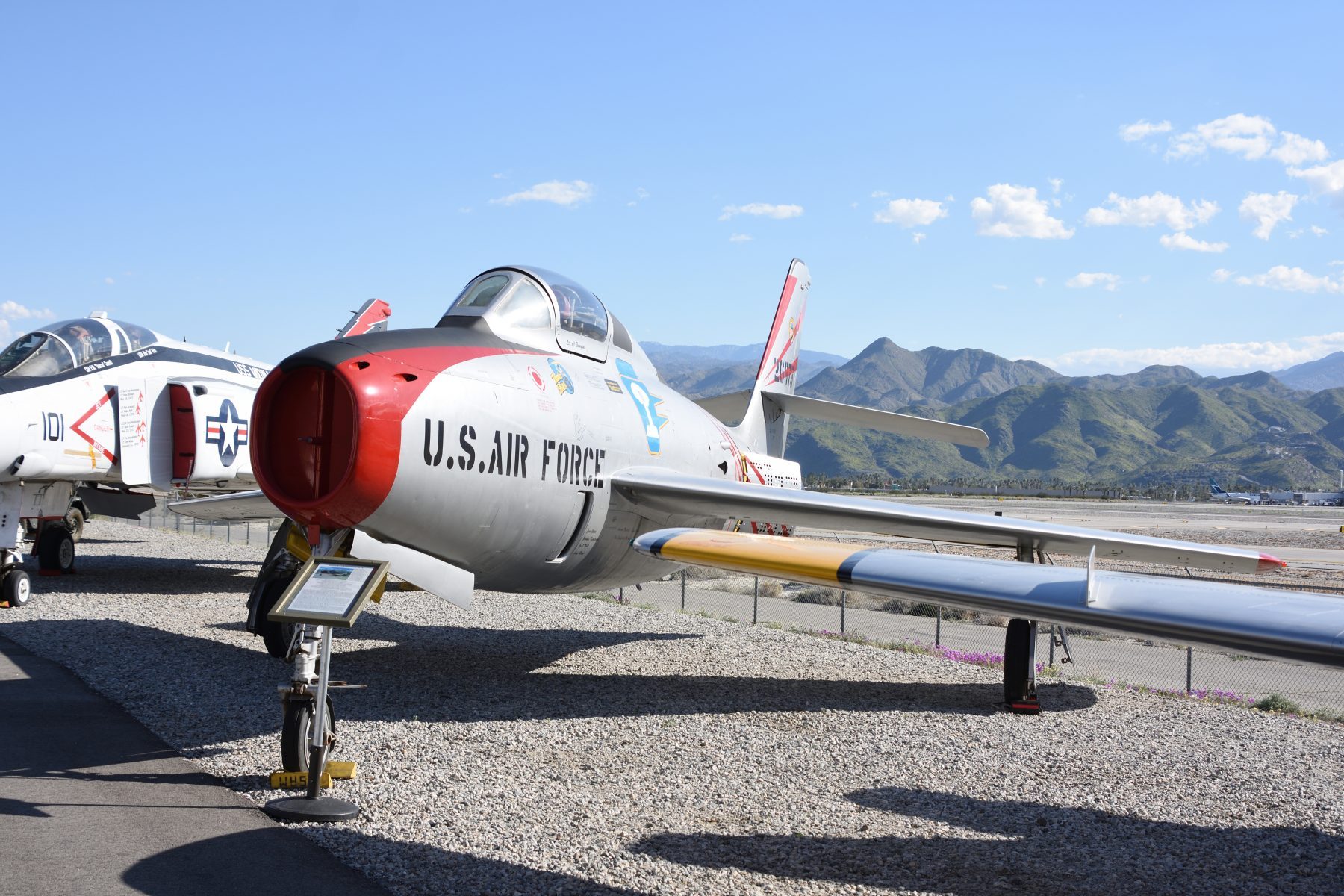 提到美軍的冷戰代表性機種,館內可見韓戰時代的F-84F、F-86F還有越戰時代的F-105D、TA-4J以及F-4S等。中華民國陸軍現役的AH-1W眼鏡蛇攻擊直升機,其前身即投入過越戰的AH-1G,也被珍藏於棕櫚泉航空博物館。這些飛機雖然沒有被漆上青天白日徽,但卻每一架都與中華民國有著極為深遠的關係。