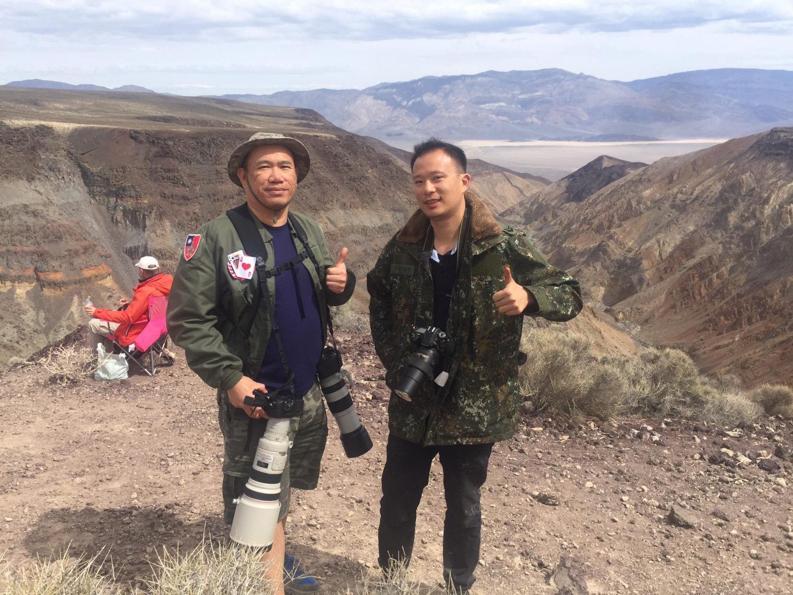 還有航空迷會在現場升起美國國旗,或者坐在色彩鮮豔的橘色座椅上,故意讓美軍飛行員發現自己正在拍照。個性頑皮的美軍飛行員,為了體恤美國納稅人的辛勞,還會故意把高度再降低,或者在峽谷多飛幾圈,讓大家拍出更好的照片。如此開放又親民的風氣,真的值得中華民國空軍好好學習。當天我們早上八點待到下午五點,運氣還算相當不錯,總計有九到10個架次的飛機經過。