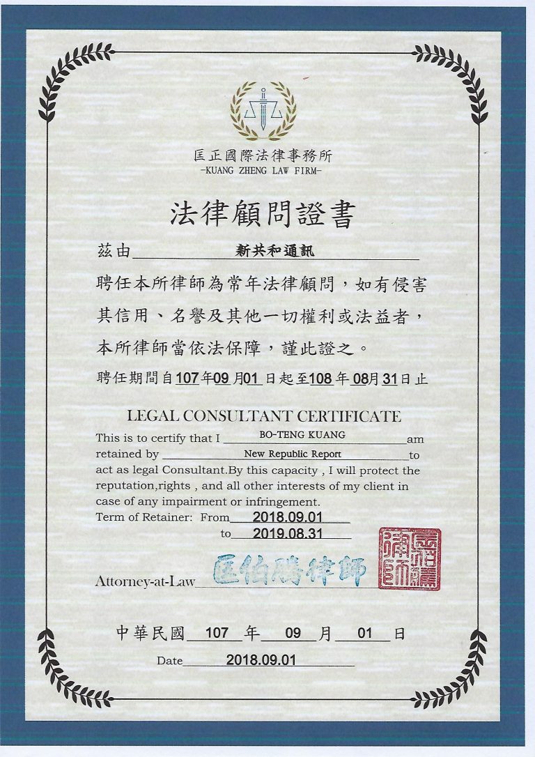 法律顧問(臺灣) Legal Consultant (Taiwan)